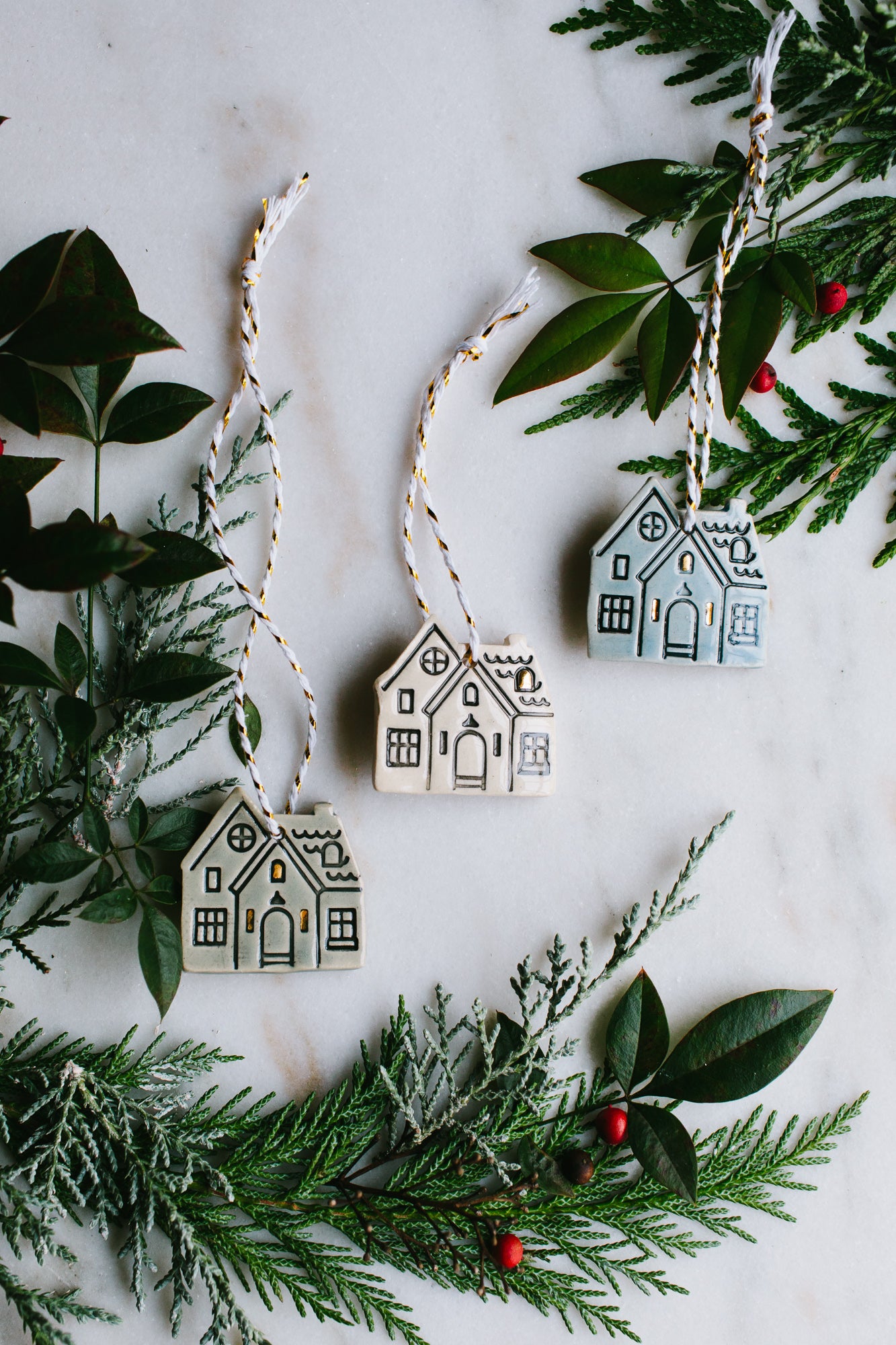 Invite a bit of holiday magic into your home with this trio of handcrafted ornaments. Each piece is shaped, textured and painted by hand.