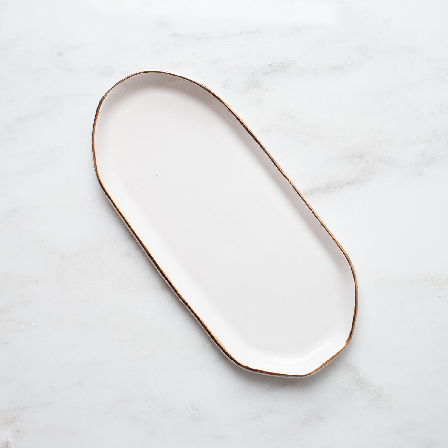 Smooth texture, glazed in glossy white, & brushed with genuine 22k gold.